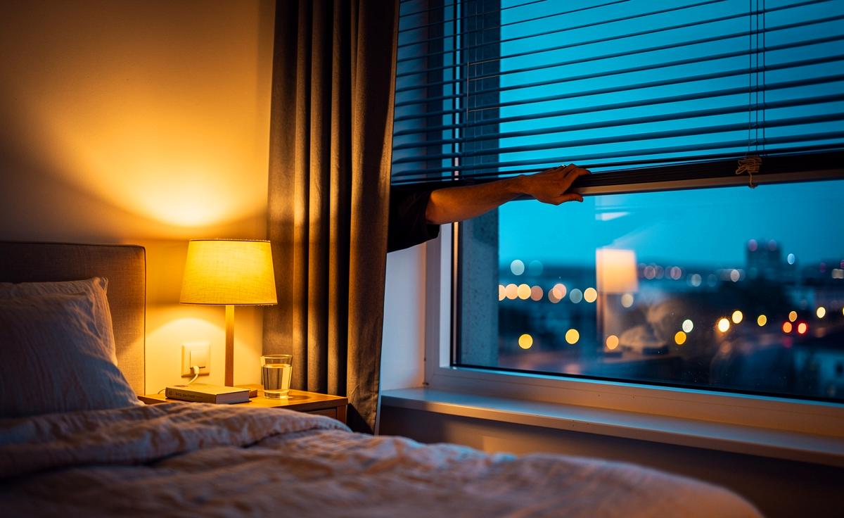 Ab 20:00 Uhr Rollläden schließen: Dunkelheit stärkt den circadianen Rhythmus, fördert Melatonin und verbessert Schlaf. Mit konkreten Tipps, Routinen und Smart-Home.
